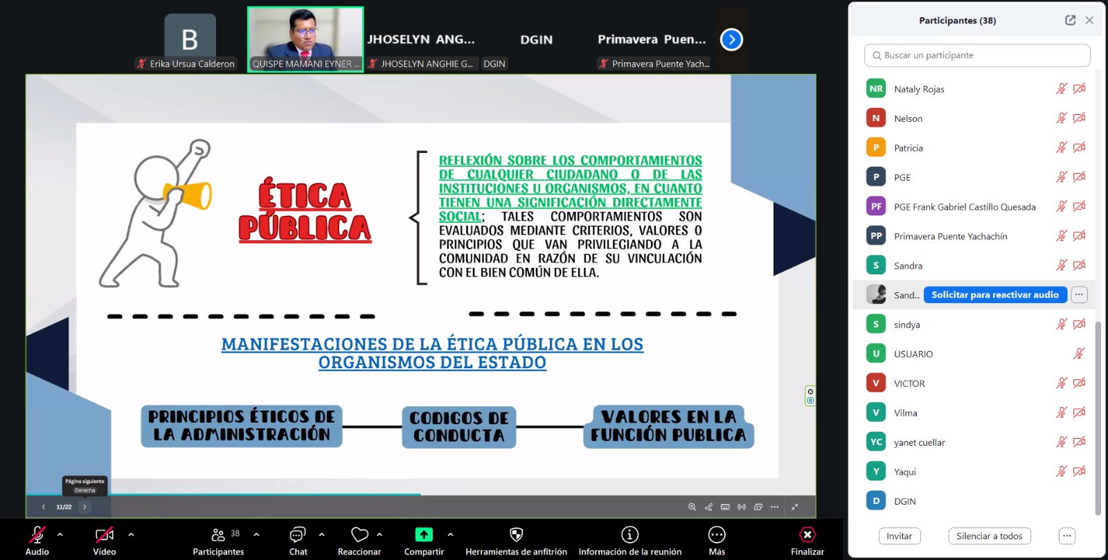 Se desarrollo el 11 de diciembre de manera virtual, con la finalidad de capacitar al publico en general sobre los roles éticos y la vulneracion del principio de probidad, dentro de la capacitacion tuvimos la participacion de los...
